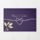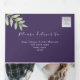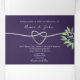 Elegante y moderno guión de caligrafía, acuarela verde invitación a una boda púrpura con un simple corazón falso de cuerda plateada y foto personalizado de la pareja.