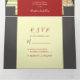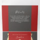 Celebra una boda de invierno festiva con esta invitación tricveces moderna con tonos rojos, negros y marfil profundos con acentos caprichosos de árbol de Navidad. Un diseño de caligrafía romántico incluye espacio dedicado a los detalles de la ceremonia, RSVP y notas personalizadas, lo que lo convierte en un diseño todo en uno perfecto y con conciencia ecológica. Nota: Esta invitación requiere un sobre separado para el envío por correo. Se recomienda utilizar un sobre A9 estándar (5,75" x 8,75").