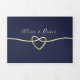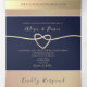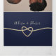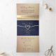 Sencilla, elegante, minimalista invitación tríplia de oro y boda azul marino, con hermoso corazón de cuerda de Relieve metalizado dorado e imagen de la pareja. Añade tu foto, detalles del boda y rsvp.