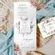 Exponga todos los detalles para su boda con todo esto en una elegante invitación floral, sin necesidad de insertar tarjetas o rsvp! Parte central que muestra los detalles de tu invitación, mientras que en la parte superior puedes añadir cualquier recepción, alojamiento, transporte, regalos, detalles del sitio web que quieras. Abajo, los huéspedes pueden cortar fácilmente la postal RSVP y depositarla en el correo. Editar información en cuadros de texto o seleccionar personalizar para realizar ajustes en la pantalla de edición. Exquisitos detalles florales en todas las secciones con flores y follaje de color rosa, polvoriento rosa, marfil, melocotón, azul turbio, azul menta, gris y sabio. Parte de nuestra "colección de bodas etéreos y eventos".