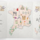 Boda de acuarela en Francia en una invitación triple que viene con la invitación de la boda, tarjetas de respuesta RSVP, Detalles e información y una foto de la pareja. Presenta un mapa de Francia con famosos monumentos como la Torre Eiffel, el Museo del Louvre, Notre-Dame, el Arco de Triunfo, el molino de viento rojo que alguna vez fue Moulin Rouge, café, vino, novia, un castillo y otros divertidos íconos. Perfecto para la boda de destino a Francia!