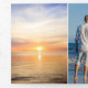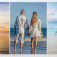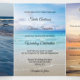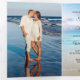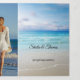 Invitación a una boda triple playa o destino con dos de sus fotos e imágenes favoritas de una colorida playa. También puede utilizar el espacio para añadir toda la información que pueda poner en una tarjeta de gabinete, como alojamiento o direcciones, etc.