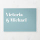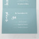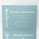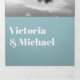 Boda elegante y sencillo para el novio y la novia moderna. Todas en una triple invitación que vienen con tarjetas de respuesta RSVP, Detalles e información y una foto de la pareja. Diseño limpio con fuentes tipográficas en negrita en azul y blanco. ¡Perfecto para cualquier boda!