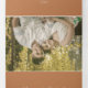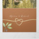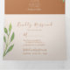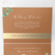 Elegante, moderna, boho, invitación triple plegable de boda de terracota con vegetación de acuarela, corazón de cuerda dorada simple y foto personalizada de la pareja en la parte posterior. Agregue su foto, detalles de la boda y rsvp.