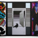 Tres diseños de negro: canicas, cuerdas y tubos.