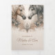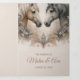 Para las parejas que disfrutan de los caballos, consideren esta invitación a una boda triplemente especial. La única cubierta cuenta con dos caballos en una pantalla decorativa. Una vez que abras la invitación, los detalles de tu boda están a la vista junto con las dos fotos deseadas. Añadir dos fotos. Tonos pasteles y elegantes. Use la plantilla para agregar sus fotos y cambiar el texto para que se ajuste a sus necesidades.