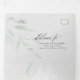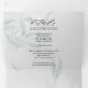 La Invitación de Boda Tríptico de Acuarela Gris de Eucalipto Sage Mínimo presenta hojas de eucalipto de color verde sage pálido combinadas con un fondo moderno de pinceladas abstractas de acuarela en gris definitivo y blanco, todo en una sola invitación de boda con tarjeta de respuesta con opción de comida pre-dirigida para que sus invitados puedan enviarla fácilmente