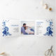 Ceremonia floral azul Chinoiserie flores boda y programa fiesta. Con un bonito diseño chino con flores azules y adornado con delicadas flores de piedra, esta carta se inspira en la porcelana y el arte clásico chino. Los tonos cobalto, índigo y blanco evocan la elegancia de los cuadros de tinta, añadiendo un toque de romanticismo a la celebración. En el centro de la decoración se puede apreciar una fotografía de la pareja, que crea un toque personal. Los nombres de la pareja se muestran con elegancia en la tipografía clásica añadiendo elegancia a la presentación general.