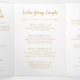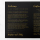 Carta de bienvenida para invitados, horario de bodas, itinerario del fin de semana y folleto de información de contacto triplicado en uno sobre el material pesado para un Boda de Las Vegas que presenta el fabuloso cartel de Las Vegas en un elegante efecto de oro falso sobre un fondo negro con fuentes creativas y tipografía que trabaja tanto para bodas de destino formales como casuales en Las Vegas. Acompáñelo con una variedad de productos de bienvenida para invitados que están disponibles en el Paper Grape Destinations Zazzle Designer Shop Vegas Collections.