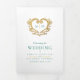 Programa de bodas en monograma cardíaco con 2 fotos de página completa. Personalice este programa de bodas triples con sus propios detalles de la ceremonia de boda. Diseño decorativo del corazón dorado en torno a sus propias iniciales monográficas en verde oscuro y oro en blanco. Hay disponibles otros colores y elementos bodas coincidentes. © Dibujo y diseño original de la hoja de Sarah Trett para www.mylittleedenweddings.com en Zazzle.