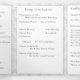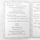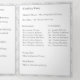 El diseño presenta la apariencia de encaje blanco como fondo del formato tradicional para una Misa Nupcial Católica. Las palabras personalizables, "La Misa Nupcial de" se presentan como el título en la portada y van seguidas de los nombres de la novia y el novio. El diseño de la portada central presenta una cruz plateada con dos anillos de boda dorados. La tenue imagen del apellido de la pareja adorna el fondo. Cuenta con espacio para hasta seis damas de honor y padrinos, una niña de las flores y un portador del anillo. También incluye espacio para dos fotos más un mensaje de agradecimiento y un mensaje conmemorativo opcional. Muy elegante. Diseñado para coordinar con la colección White Lace Catholic Monogrammed Wedding Suite.