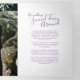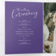 Un programa de renovación de seis páginas de arte moderno de boda morado. Edite este programa de boda con sus propios nombres de renovación de bodas, fechas, presentación, redacción de la ceremonia, asistentes de la fiesta de boda, foto de su primer partido o boda restringido, y gracias por usted. Arte y diseño originales por www.mylittleedenweddings.com