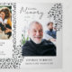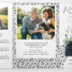 Programa de funeral blanco trifold personalizado con varias fotos de su ser querido y la vida que han llevado. El programa conmemorativo trifold tiene un tema musical con ilustraciones dibujadas a mano de notas y un patrón dibujado a mano de notas, perfecto para músicos, compositores, profesores de música y similares. Agregue un obituario, agradecimientos, un poema o oración.