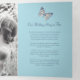 Programa de renovación de seis páginas de bodas o ceremonia de bodas. Edite este programa de bodas con sus propios nombres, fechas, presentación, redacción de la ceremonia, asistentes a la fiesta de bodas, una foto de su primer partido o boda restringido, o una foto de su compromiso, y añada sus propias palabras de agradecimiento al dorso. Se ofrecen opciones de color y de color a juego con el azul turbio oscuro, el azul claro, el naranja rosa de coral y el boda de mariposas crema y otros productos bodas de color. Original arte y diseño de mariposa de Sarah Trett para www.mylittleedenweddings.com en Zazzle.