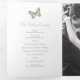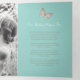 Programa de renovación de seis páginas de bodas o ceremonia de bodas. Edite este programa de bodas con sus propios nombres, fechas, presentación, redacción de la ceremonia, asistentes a la fiesta de bodas, foto de su primer partido o boda restringido, o una foto de su compromiso, y añada sus propias palabras de agradecimiento al dorso. Se ofrecen mariposas verde azuladas, marrones y crema, así como otros productos de boda de colores y opciones de color. Original arte y diseño de mariposa de Sarah Trett para www.mylittleedenweddings.com en Zazzle.
