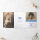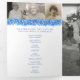 Programa funerario orden de servicio gatefold floral olomme-no-flores programa funerario de arte en blanco, azul, con toques de amarillo y verde sobre papel blanco. Sencillamente reemplace el texto de muestra y los titulares de fotos con sus propias fotos especiales y detalles de información. Dibujo original con tinta y acuarela de arte y diseño de Sarah Trett para www.mylittleeden.com (las fotos son sólo imágenes de marcador de posición para que las reemplace con las suyas).