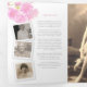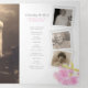 Orden funeral del servicio triculoplegado programa de arte de seis páginas de flor de cerezo de seis páginas. Embellecido con flores rosas y hojas verdes de color amarillo claro primavera sobre un fondo blanco. Simplemente reemplace el texto de ejemplo y los titulares de fotos con marcos blancos de estilo instantáneo con sus propias fotos especiales y detalles de información. Pintura botánica original de acuarela y diseño de Sarah Trett para www.mylittleeden.com (las fotos son sólo imágenes de marcador de posición para que las reemplace con las suyas propias).