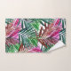 Get some summer vibes in your bathroom with our beach summer palms patterned bathroom towel set. This vibrant and colorful design features lush palm tree fronds in shades of green and purple, creating a serene and relaxing atmosphere in any space. Perfect for adding a touch of beachy coastal charm, this towel set is a must-have for any beach lover. Illustrated by Jo Story of Sketchbook Designs.
