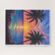 Escape into a world of color and calm with this vibrant puzzle featuring a stunning tropical sunset. Warm golden light reflects across the ocean as palm trees frame a dramatic sky filled with shades of pink, orange, and blue.