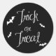 Un truco de Halloween en blanco y negro o un pegatina con tipografía peculiar con murciélagos. Este pegatina es perfecto para las fiestas de Halloween.