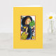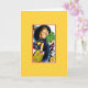 Vintage/tarjeta de felicitación retra de Halloween. ¡Niña adorable en el traje de una bruja negra con una mascarilla verde! ¡Truco o el tratar con su pequeño gato dulce!