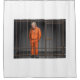 Una pintura digital de un expresidente tras las rejas. Cortina de baño