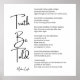 Truth Be Told poema decoración de arte mural poster de decoración de animaciones de poesía en blanco y negro En MotherEagle Inspires, mezclamos el emotivo poder de la poesía con artículos de todos los días hermosamente hechos para crear regalos que inspiren, consolar y eleven su espacio. Cada producto —desde tazas y prendas de vestir hasta decoración casera y artículos de papelería— presenta poemas originales diseñados para resonar con tu corazón y despertar alegría en tu vida diaria. Tanto si busca un regalo significativo para un ser querido como un recordatorio personal de la belleza de la vida, nuestra colección transforma las palabras en tesoros tangibles. TRANSFORMAR TU ESPACIO Y ESPÍRITU CON REGALOS POÉTICOS APAREJES Y ACCESORIOS: Usa tu inspiración Nuestra vestimenta con temática poética te permite llevar inspiración donde vayas. Desde empoderar a las camisetas con versos como "Rise and Shine" hasta los pañuelos cómodos, cada pieza es un comienzo de conversación. DECORACIÓN DE CASA: Infundir tu espacio con significado Convierte tu hogar en un santuario con nuestro arte de pared de poesía, almohadas de lanzamiento y utensilios de cocina. Imagínate beber café matutino de una taza con la inscripción "Holding Space for Love" o adornar tu sala de estar con un lienzo que susurra "We Belong Together." STATIONERY, JOURNALS, NOTEBOOKS & PLANNERS: Escribe tu propia historia Nuestras revistas de poesía y tarjetas de felicitación son perfectas para escritores, soñadores y regalos. TOMA LOS SIGUIENTES PASOS: COMPRA AHORA: Explora nuestras colecciones de curación y encuentra la pieza perfecta para inspirar tu día. Haz clic en "Añadir al carro" y deja que la poesía transforme tu mundo. DIFUNDE EL AMOR: Deja una ⭐ ⭐ ⭐ ⭐ revisión después de compra - tus palabras ayudan a otros a descubrir nuestro arte! CONECTAMOS: Síguenos en Instagram y Pinterest (@MotherEagle_Inspires) para nuevos poemas, y miradas tras bambalinas en nuestro proceso creativo. DIVE PROEPER: ¿Ama nuestro trabajo? Explora nuestros libros de poesía en https://books2read.com/keroyking, donde los versos cobran vida en colecciones completas. para títulos como "Susurros del alma divina", "Volando sin alas" y "Bailando con palabras". ¡Gracias por visitar a MotherEagle Inspires! Su apoyo nos permite seguir creando poesía que cura, fortalece y conecta. Cada compra no es sólo una transacción, es un paso hacia la construcción de una comunidad basada en la autenticidad. Visita www.zazzle.com/store/mothereagle_inspires para ver regalos relacionados con poesía y https://books2read.com/keroyking para libros de poesía y más... #Inspirationalpoetrygifts #HandcraftLiteraryDecoración #Uniquemotivationalappare #Estacionador poético personalizado #Meaningfulgiftideas para los amantes de la lectura ¿Buscando "decoración casera con temática de poesía" o "regalos para entusiastas de la poesía"? Has encontrado tu destino