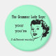 Grammar Lady dice: ¡tu y tú son dos palabras diferentes! La Grammar Lady quiere que recuerden que es una persona posesiva y que usted es una contracción de su ser. Diseño sencillo de un solo color con texto y cara.
