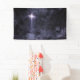 Un inusual diseño de Pascua 3D creado en Vue e ilustrando la salvación de la oscuridad a la luz a través de la cruz de Cristo. En un bosque oscuro, los árboles se marchitan y rompen, con niebla y niebla rodeando sus troncos retorcidos y cubriendo el terreno rocoso. El bosque está delimitado por un alto muro de piedra que bloquea cualquier vista del otro lado. Pero en la pared hay un agujero en forma de cruz, y el sol naciente brilla brillantemente a través de la brecha, invitando al espectador a escapar de las sombras a la luz del sol.