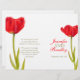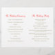 Sencillo tulipán rojo brillante de doble cara sobre un programa de boda de fondo blanco. Parte del conjunto estacionario del boda de tulipanes rojos de una sola acuarela. Rojo claro, verde y blanco. Edite este programa de bodas con su propio nombre, fechas, redacción de la ceremonia, asistentes a la fiesta de bodas y gracias . Un programa sencillo pero elegante simplemente reemplaza el texto de ejemplo con los detalles de la información del boda y dobla los programas a la mitad en el momento de la entrega. Sencillo estilo rústico primaveral moderno y romántico programa de ceremonias bodas. Diseño y pintura acuarela de Sarah Trett.