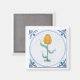 Tejas azules y blancas de tela delft de tulipanes amarillos y elementos florales simples en azul con un aspecto pintado a mano.