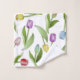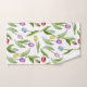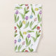 El diseño del producto presenta un patrón de flores de tulipán coloridas en morado, rojo, rosa, azul y amarillo. Este ilustracion botánico fabrica toallas de baño elegantes, modernas y únicas.