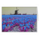 Tarjeta de felicitación del campo de los tulipanes azules de los molinoes de viento de Popart. Un lanscape de la primavera de la fantasía con los tulipanes azules coloca y los molinoes de viento en la tarjeta colorida del arte pop del horizonte. ¡Esta tarjeta del popart del festival del tulipán azul de Holanda es completamente adaptable, añade sus imágenes y textos!