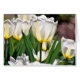 Los tulipanes blancos con plumas amarillas brillan al sol de la tarde. Tenga en cuenta que esta tarjeta puede ser personalizada con su propia inscripción personal.