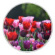 Trae al aire libre con esta foto de flores tulipanas rosadas, rojas y violetas hechas en un pomo de la puerta de un tocador de cerámica.