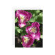Tulipanes morados y amarillos en un día soleado en el jardín. La foto fue tomada en junio de 2022. El poster es adecuado para la decoración interior.