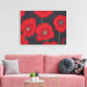 La pintura de tulipanes rojos brillantes sobre negro está impresa en lienzos envueltos.