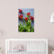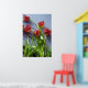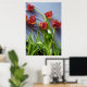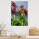Fotografía de tulipanes rojos en un fondo azul. ¡personalizar que el poster imprima con sus propias imágenes o texto!