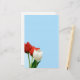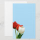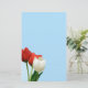 ¡Diseño hermoso de los efectos de escritorio de la flor para la escritura de la nota, un agradecimiento usted, o apenas decir hola! Estos efectos de escritorio ofrecen una fotografía del tuipsagainst rojo y blanco un fondo azul. Un montón de espacio para escribir una nota corta. Alineado. Cortesía original de la foto de pixabay.com. Adaptado por Lisa Marie Robinson.