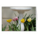 La fotografía floral de la naturaleza, de tulipanes preciosos por un birdbath, y un pensamiento en usted expresión comprende esta tarjeta