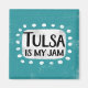 "Tulsa is My Jam" es un divertido diseño de texto con una forma de acento blanco rodeado de puntos blancos y caprichosos.