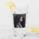 Una pintura digital de una joven con el pelo largo y rizado. Tumbler de vidrio