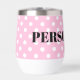 Tumbler de vidrio para vino personalizado con patrón de polkadot. Diseño alegre de vidrio para beber. Excelente por cumpleaños, boda y más. Color rosa o personalizado con la impresión de puntos de polka blanco.