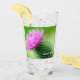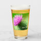 Fotografía de cerca (macro) de un cardo morado, con el brindis en gaélico escocés "Slàinte Mhath".