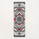 Una mandala cuadrada concéntrica toma la apariencia de un túnel que atrae al espectador con una combinación de líneas anguladas, triángulos y círculos en tonos grises, rojos y blancos para casi crear una ilusión óptica.