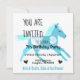 Personaliza fácilmente esta invitación turquesa de cumpleaños para cualquier edad de cumpleaños. Estaciones ecuestres coincidentes, y regalos también están disponibles para la cesta de cumpleaños de su chica. Ideal para un paseo en poni, fiesta, tema ecuestre. Caballo pequeño, mini caballo o ponis de Shetland.