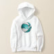 Esta sudadera con capucha de colores de equipo de baloncesto personalizada presenta un gráfico de baloncesto con paneles recoloreados alternados turquesa y blanco sobre los que puedes personalizar el número de la camiseta del atleta - por katz_d_zynes