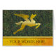 Un caballo dorado que vuela sobre un patrón de hojas de sauce, en tonos amarillos y verdes, con un lugar donde poner tu nombre. Las texturas doradas y un adorno retro de madera llenan el área de escritura interior.