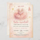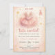 Celebrate the arrival of a little ballerina with this elegant pink ballet-themed baby shower invitation. Featuring a watercolor tutu dress, soft blush background, gold glitter accents, and matching back design with ballet slippers and a magic wand, this invitation brings charm and sweetness to any baby shower.