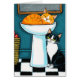 Tarjeta de nota temática del gato lindo que ofrece un ilustracion del gatos en el cuarto de baño. Un tabby del jengibre duerme pacífico en el fregadero y un smoking se sienta debajo de mirar fijamente con los ojos verdes grandes. Perfeccione para enviar a los amantes del gato y a usar para cualquier ocasión. Personalice el mensaje interior o suprímalo para un espacio en blanco dentro. © Lisa Marie Robinson del ilustracion. Todos los derechos reservados.